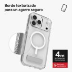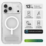 Crystal Palace Snap con soporte también cuenta con tecnología anti-amarillamiento y un acabado anti-rayaduras, para que tu funda (y tu iPhone) luzcan siempre impecables. Asimismo, es compatible con MagSafe y funciona a la perfección con cargadores inalámbricos. Es el compañero ideal: discreto, funcional y preparado para todo.