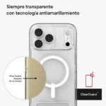 *Claridad Cristalina: Disfruta de una transparencia impecable que se mantiene en el tiempo, gracias a la tecnología ClearGuard™ anti-amarillamiento, que conserva la funda siempre clara y brillante.