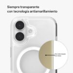 Cuenta con tecnología antiamarillamiento que mantiene la funda (y tu teléfono) impecables. Su diseño ligero y estilizado no añade peso innecesario. Y, por supuesto, es compatible con MagSafe.