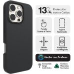 La funda Manhattan Snap, diseñada para el viajero urbano y el pionero. No solo protege, sino que mejora la experiencia de uso de tu teléfono. ofrece hasta 4 metros de protección con grafeno —uno de los materiales más fuertes del mundo— y un agarre cómodo gracias a su silicona suave y bordes texturizados. Fabricada con hasta un 96% de materiales reciclados, es flexible, no se engancha al bolsillo y es compatible con MagSafe y la mayoría de los cargadores inalámbricos.
